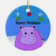 En söt design för hippopotamussamlaren. En blå bakgrund med röda och grönt dekorationer. Ett stort leende lila hippo accentuerar detta prydnadsämne.