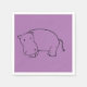 Söt linje teckning i en hippo på lila gör en roligt papper napkin