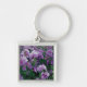 Lila hisbiscus blommor fyrkantig silverfärgad nyckelring