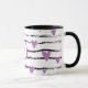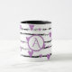 Modern och rustisk lila mönster på vitt med slimmat vågrät målat svart rand. En vit och lila cirkel, ram med mall för ditt monogram brev.