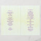 Mall för bröllopsprogram av lila vattenblommor som ska anpassas med din egen text och formulering och som ska vikas halvvägs efter köpet. En stor blommigt överst visas till hälften på framsidan och till hälften på baksidan. Text matchar lila på en lätt infogad bakgrund för ett mer detaljerat utseende. Alla fyra sidor har mallar som innehåller all information om ceremonin, lista över speciella personer och ett tackmeddelande på sista sidan. Kontrollera texten och stavningen noga eftersom programmet INTE KOMMER ATT PROOFREAD före leverans. **Använda den här projektionsytan avslutar, vit papper bara för att glansen inte faller ihop så bra.