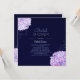 Mjuka och söta vattenskogar blåser i nyanser av lila, lavender, rosa och ljusblå + ljusblå snurrar + marin blå bakgrund illustrerad på anpassningsbar Inbjudningskort för möhippa. Anpassa chicens vattenkortskort med egen text för en MODERN HYDRANGEA-MÖHIPPA | ELEGANT BOTANICAL THEMED MÖHIPPA | LILA eller NAVY FÄRG PALETTE MÖHIPPA! (Du hittar de bröllop-essentialer och -favörer som passar i den här butiken, Möhippa himlen. Kontakta ujean4791@gmail.com för anpassningsbar och/eller samordning av bröllop-kontorsmaterial.)