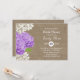 Lila Hydrangea Rustic Laced Burlap Möhippa Inbjudningar