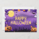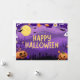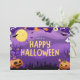 Fira den kusliga säsongen med detta lila illustrativa Glad Halloween platta högtidskort. Framsidan visar en lekfull design, medan baksidan innehåller fullständigt redigerbar text så att du kan anpassa ditt eget meddelande. Ett perfekt sätt att skicka festliga hälsningar till familj, vänner eller kollegor.