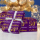 Den här pappra designen innehåller ett meddelande som "FirstName's 50:e BIRTHDAY!", där "50:e" har ett utseende som liknar guld och liknar färg. Namn kan anpassas och bakgrunden är färgadens lila. Det skulle kanske kunna användas när man slår in gåvor som ges till någons femtioårsdag. [~Z0000182]