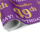 Den här pappra utformningen har ett meddelande som "Samantha's 49:e BIRTHDAY!", där "49:e" har ett utseende som liknar guld och liknar färg. Namn kan anpassas och bakgrunden är färgadens lila. Det kan kanske användas när man slår in presenter som ges för någons fyrtionionde födelsedag. [~Z0000182]