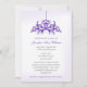 Personlig Inbjudningskort för möhippa med en lila chandelier på lila och vit bakgrund. Anpassa inbjudningskort för möhippan helt genom att klicka på "anpassa" om du vill ha fler teckensnittsalternativ och färger som kan placeras i listrutan "redigera" om du vill välja teckensnitt i färg.