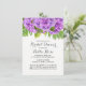 Skapa bara för dig. Den enkla inbjudan till elegant bröllop har vackra lilor i fullt blomma, perfekt för lila tema bröllop. Om du vill lägga till, ta bort eller ändra text storlekt och eller färg enligt dina önskemål klickar du på Anpassa-knapp. Alla bröllopsinbjudningar är tillgängliga med flera matchande tillbehör.