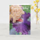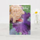 Ett hälsningskort från födelsedag som innehåller fotobilden av en lila och persikofärgad färgad, skäggig Iris-blomma. En underbar, blommigt design! Välj från projektionsyta eller glansigt stil-kort.