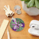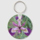 Den här nyckelkedjan innehåller ett foto av en lila Iris. Fotot togs med makrofotografi för ett detaljerat resultat. Den vackra blomman blommar varje år i trädgårdsdammen och får mig att le.