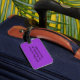 Denna briljanta färgad iris-blommigt-bagagetaggen kommer att framträda i bagageterminalen. Susan Golis designade den här märkrn från ett originalfoto av sin iris-trädgård.