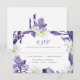 Dessa botaniska svarskort från bröllop har vattenfärgsblommor och vita daisy i lila. Anpassa dem med texten. Matchande bröllop-svit och mottagningsprodukter finns också tillgängliga.
