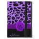Snyggt iPad mini fodral, med byggt i stativ och grafik av vild lila och svart taggigt päls-utskrift. En solid svart grund i fodral och grafik på ett lila band mellan de två bakgrunderna dekoreras med grafik från en rik lila ro. Texten i lavender, i grund, är redot att anpassa sig. Det är en utmärkt presentidé.