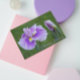 Ett kort för hälsning på födelsedagen för alla som innehåller fotobilden av en underbar japansk isblomma av den avundsvärda sorten med lila. Välj från projektionsyta eller glansigt stil-kort.