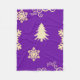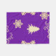 En färgstark juldekordesign som innehåller snöflingor, Julgranar och snurrar utspridda över en gynnsam lila.