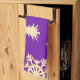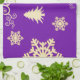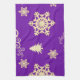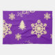 En färgstark juldekordesign som innehåller snöflingor, Julgranar och snurrar utspridda över en gynnsam lila.