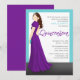 Lila och turkos Quinceañera födelsedagsinbjudningar med en illustration av en brunett med långt hår som bär en tiara och en vacker kunglig lila klänning, för din dotters 15-årsdag.