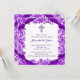 Vacker lila kors första kommunion inbjudan med fina lila blommor och eleganta svängar med lila band. Denna vackra lila första kommunion inbjudan kan enkelt anpassas för din händelse genom att helt enkelt lägga till dina evenemangsuppgifter i typsnitt, färg och formulering efter eget val. Du kan också ändra bakgrundsfärgen.