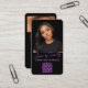 Ett affärskort för svart och lila-lash-tekniker med en professionell porträtt-front med QR-kod för enkel bokning och en ren, serviceinriktad baksida. Designat med mjuk lyxfärgad lila på en elegant svart bakgrund är detta moderna kort perfekt för lashkonstnärer, skönhetsalonger och professioneller som söker en snyggt och storskalig varumärkesidentitet.