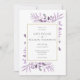 Med ömtåliga lila och syrenfärgade akvarellblad och en chic guld ram. Denna eleganta botaniska bröllopsinbjudan kan anpassas med ditt foto och speciell information om bröllopsdagen i modern typografi. Designad av Thisisnotme