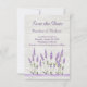 Lila lavendelblommor på ljusa träplankor bakgrund Spara datumet platt kort