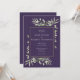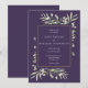 Framhäver känsliga akvarellblad på en chic lila bakgrund. Denna eleganta botaniska bröllopsinbjudan kan anpassas med din speciella bröllopsinformation i modern typografi. Designad av Thisisnotme©