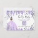 Lila Quinceañera Party OSA-höljeskort: Det här elegant vågrät-höljet är designat för att underlätta den digitala OSAN. Framsidan har ett QR-anpassade och skapar det enkelt för gäster att komma till OSAN via din webbplats eller ditt formulär, med ytterligare en plats för visning av en webbplats-URL. Lila vattenfärgslilak och lavender-blommor ligger lätt överst, med nyanser som sträcker sig från djupviolett till mjuk lavender. En flicka i en häpnadsväckande lila gnistra på den lämnat ger en charmerande, personlig beröring. Baksidan fortsätter blommigtens utformning längst upp, tillsammans med en faux glitter gnistra tiara för royalets beröring. Det finns plats för födelsedagstjuvens namn och "Mis Quince" i snyggtens manustypografi. Den vita bakgrunden ger ett polerat utseende men kan anpassas till valfritt färg. Kortet för djurutrymme blandar tradition och teknik som kompletterar ett antal olika Quinceañera-teman. Tillgängligt som utskrivet kort.