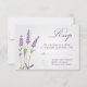 Snygg lila lavender-blommor Bröllop Svara platt kort. På baksidan av kortet - Lavendel blommor på lätt träbakgrund.