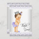 Lavender och grått-babydusch tack vare att du har ett kort med den berömvärda vintage prinsessan flicka med lavender lila ruffle byxor och tofflor med silver krona och lila i håret på en elegant lavender och grått snöre bakgrund. Det här söta lavender- och grått-babyduschkortet är enkelt att anpassa genom att lägga till ditt meddelande, eller lämna tomt om du vill lägga till ditt handskrivna meddelande när det kommer.