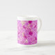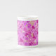 Lila-, lavender- och plommonblommor, plommonbakgru benporslin mugg