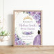 Anpassa välkomsttecknet för chicen Quinceañera/födelsedagsfest enkelt och snabbt. Tryck bara på anpassningsknappen om du vill ordna om och formatera stil och placera texten. Den här teckensymbolens dekoration har fantastiska lila-, lilac-, lavender-blommigt- och guld-accenter. All text är redigerbar! Underbar för Quinceañera, söt 16, födelsedagsfest, möhippa, Christening/Baptism med mera! Matchande artiklar tillgängliga i arkivet! c) Lycklig Cat Studio.