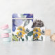 När du sväller pappert visas en vattenfärgskonstruktion för elegant med enkel lila, lavendel, gult och vita orkidéer och grön blommigt.