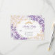 Lila lila blomster Quinceanera RSVP-svarskort. Funktioner, typsnitt, guld fjärilar, akvarellrosor och krona. Perfekt för en elegant prinsessglamfirande. Anpassa med dina egna detaljer.