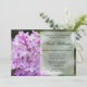 Ett fantastiskt foto av lila lilac-blommor visas på blommigten inbjudningskort för möhippan.