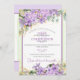 Vacker bröllopsinbjudan lila Lilac blommar på båda sidor. Uppdatera enkelt platshållartexten med dina specifikationer och bestäm sedan om du vill skriva ut eller skicka digitalt.