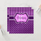Den här mörk lila och lavender polka dots och rand Sweet 16:e födelsedagsfest inbjudan kan också anpassas för Quinceanera, Bat mitzvah, möhippa, förlovningsfest och många andra speciellare händelser. Texten och det papprare valet är anpassade. Om det finns några matchande objekt som du vill ha i den här designen, t.ex. OSA, tackkort, spara datumkort osv., skicka e-post till niteowlstudio@gmail.com med din begäran.
