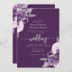 Den här inbjudan från elegant bröllop innehåller bouquets lila och lilac blommigt, som är utskriven med silver faux foil grey i två hörn, på lila. Anpassadet kombinerar silver grått serif, italic och handskrift typsnitt. Blommigtens utformning upprepas på baksidan.