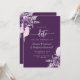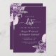 Elegant bröllop sparar datumkortet med lila och lilac blommigt-buketter som är avaktiverade med silver faux foil grey i två hörn, på lila. Anpassadet kombinerar silver grått serif, italic och handskrift typsnitt. Den omvända sidan har en matchande utformning av lila, lilac och silver blommigt.