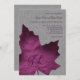 En stor, subtilt monogrammad lila, lönnapel löv, på en illustrerad linbakgrund, dekorerar gråttets bröllopsinbjudan. Det visas på den pappra punkten, men jag rekommenderar att man ser större struktur och vikt på de pappra linorna.