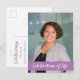 Bjud in vänner och familj att dela sina favoritberättelser och minnen med detta eleganta lila och vita livs firande foto postkort inbjudan.