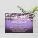 Vintage inbjudningskort för möhippa med band av ljus på grenar i det gamla träd och romantiska blommor fält på en lila kväll. Cute snyggt och kreativ inbjudningskort för möhippa för utomhusbruk, party eller möhippa i en lada. Kontakta mig om du behöver hjälp med anpassning eller om du behöver hjälp med en begäran från anpassningsbar färg.