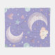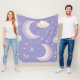 Sluta dig i himmelskt välbehag med denna lila filt med måne och moln, med en halvmåne, fluffiga moln och en stjärnhimmel på en mjuk lila bakgrund.