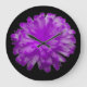 Den här fantastisk-klockan innehåller ett foto av en marigold blomma som har manipulerats för att skapa en vacker blomma med bedövande lila petals. Bakgrunden är svart för att visa blommans skönhet till fullo.