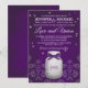 En underbar lila och en plommonhud på burk bröllopsinbjudning som ser ut som den glänser. Lägg till initialer och/eller monogram för bruden och trimmen i burk med en tryckt banderollutsedesign. En subtil vintage damm, antika snöre-gräns komplimenterar den här roliga men ändå elegant-konstruktionen med fantastiska eldflugor inuti och utanför burk. De här inbjudningskorten är vackra för ett bröllop som kallas natt, barnyard, bondgård eller land. Bild © Krissy H. Studios, LLC.Alla rättigheter förbehållna.
