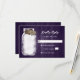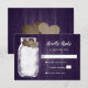 Rustic lila bröllop OSA-kort med mynning burk och två burlap-hjärtan med initialer mot en rustisk träbakgrund. Anpassa enkelt den här söta OSA kort för rustik lila.