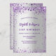En giftig och feminin 21:a (eller någon ålder) födelsedagsfest inbjudan. På framsidan: En trendig faux silver tittar bakgrund. Dekorerad med mörkens lila och violet faux glitter, gnistor. Anpassa och lägg till information om namn, party. Namn är skrivet med ett handskript stil, lila färgad brev. Baksida: faux silver och faux glitter.