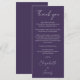 Ett elegant lila bröllopsfirande tack mottagning kort. Personlig tackmeddelande uppsättning i stilfull typografi. En speciell souvenir tack till dina gäster. Designad av Thisisnotme