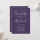 Med signaturstil namn, kan denna eleganta bröllopsinbjudan anpassas med din information i chic vit text på en lila bakgrund. Du kan anpassa bakgrundsfärgen för att matcha ditt bröllopstema. Designad av Thisisnotme©