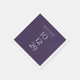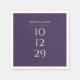 Elegant servett med ditt speciella datum och namn i modern typsnitt på en lila bakgrund. Designad av Thisisnotme