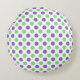 Pryda och förnya ditt hem med kuddar som förkroppsligar färg och stil. Denna klassiska runda kuddarna ger komfort och en avslappnad känsla till ditt hem och kan användas på en säng, stol eller soffa. Denna prickiga kudde har medelstora lila och mintgrå prickar mot en vit bakgrund. Anpassa den genom att välja en annan bakgrundsfärg.